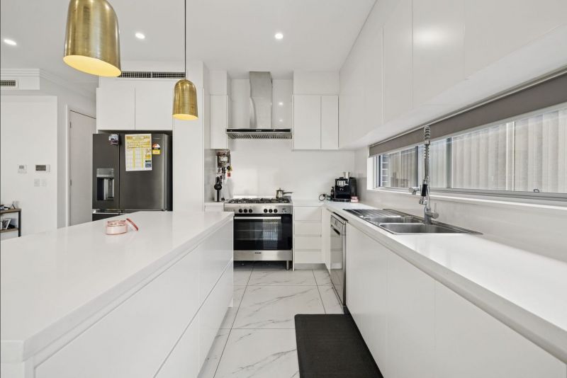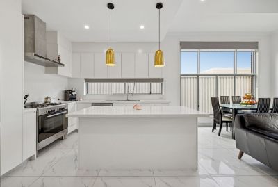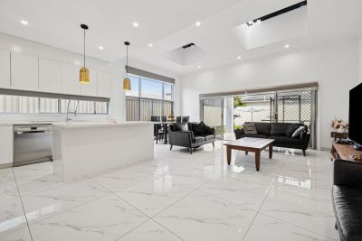 Step inside to discover light-filled interiors enhanced by high ceilings and skylights, creating an inviting sense of openness. The gourmet kitchen showcases sleek stone benchtops, premium stainless-steel appliances, and abundant storage-ideal for both family meals and entertaining guests. The home opens out to a private alfresco and landscaped backyard, perfect for outdoor entertaining.