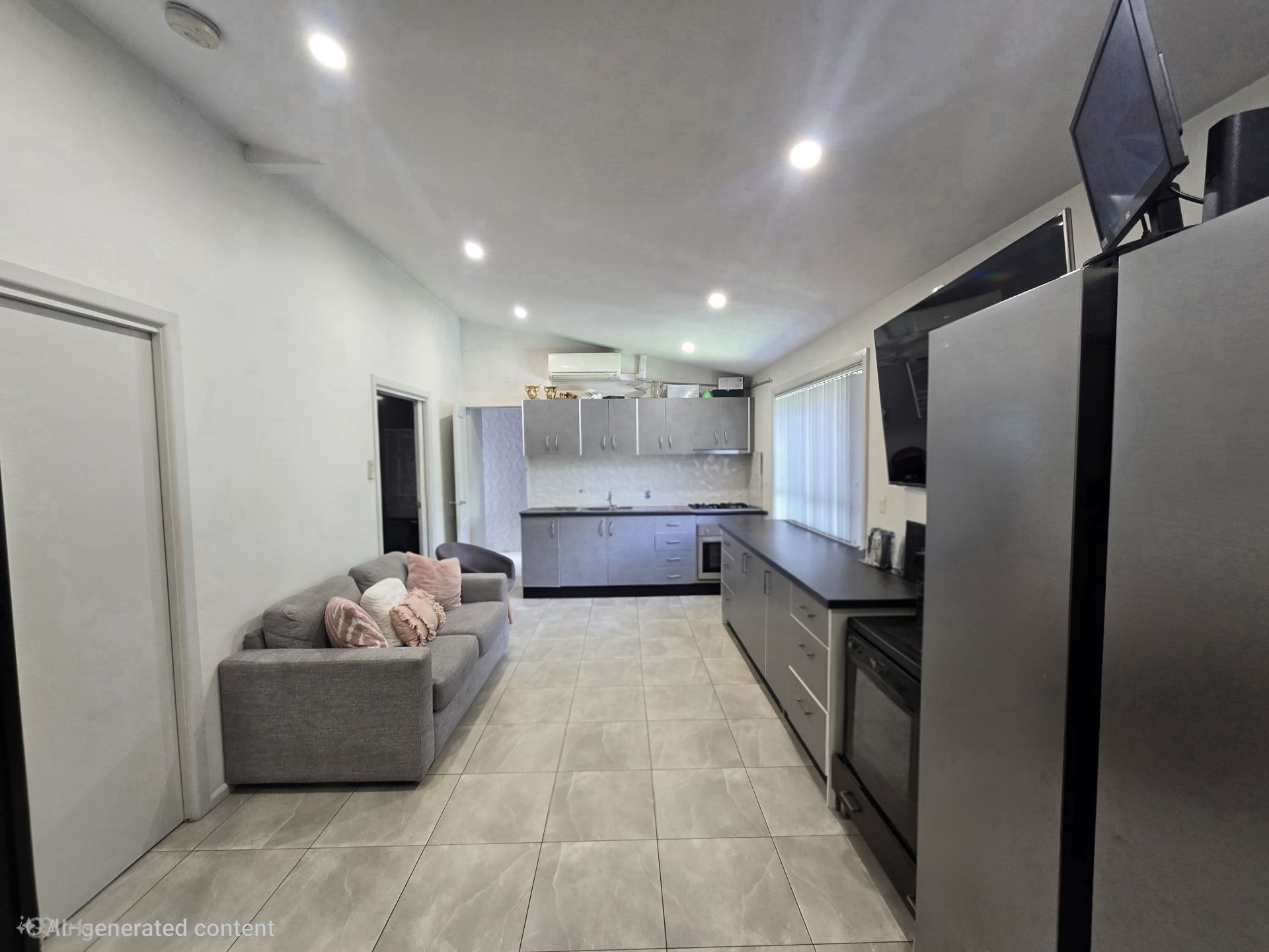 - Open-plan dining and kitchen area with ample storage
